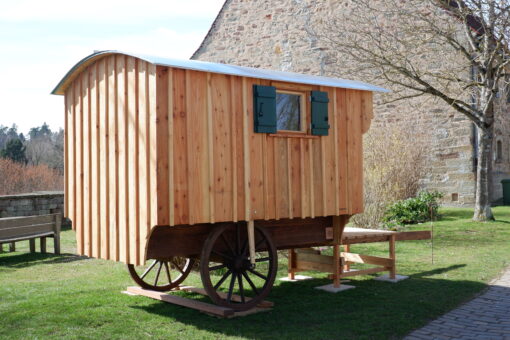 Unser Schäferwagen im Klosterhof bietet für Pilgerer, Wanderer und Romantiker eine einfache und rustikale Übernachtunsgmöglichkeit für maximal zwei Personen.