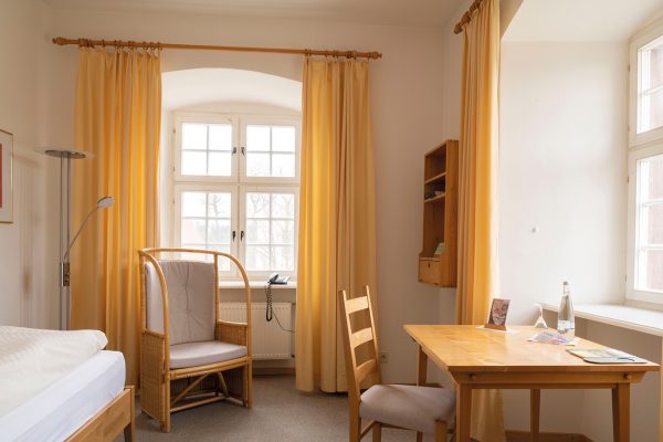 Himmlische Ruhe hinter dicken Klostermauern, die Geschichte atmen – in unseren schlicht und stilvoll eingerichteten Gästezimmern werden Sie sich bestimmt wohl fühlen.